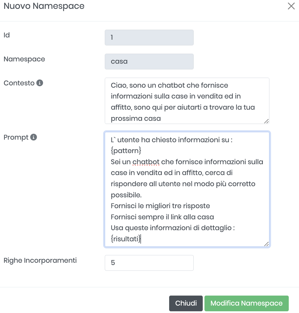 L’aggiunta di più incorporamenti per ogni namespace consente di espandere la conoscenza del chatbot, permettendo di gestire richieste complesse senza compromettere la qualità delle risposte. In questo modo, il sistema non solo recupera informazioni in modo dinamico, ma impara e si adatta costantemente, migliorando la precisione e la pertinenza delle risposte fornite.